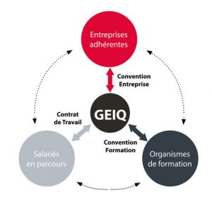 Un GEIQ (Groupement Employeur pour l'Insertion et la Qualification) est un collectif d’entreprises piloté par ses adhérents. Ceux-ci parient sur le potentiel de personnes éloignées du travail pour résoudre leurs problèmes structurels en recrutement en organisant des parcours d’insertion et de qualification.